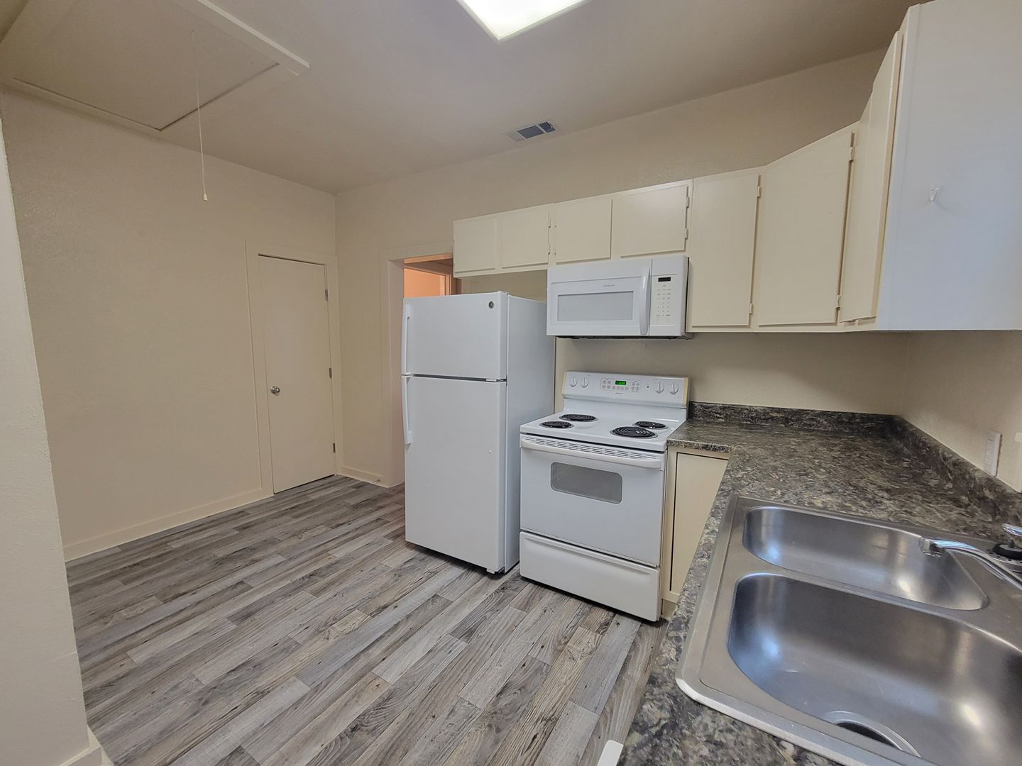 One bedroom, one bathroom duplex. Remodeled with new flooring. 712 square feet. Central heating and air conditioning. Water, sewer, and trash included. Short walk to East Texas A&M. Washer and dryer available to rent.