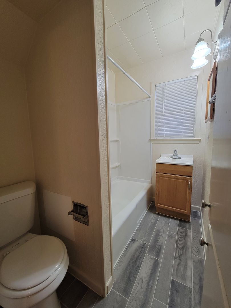 One bedroom, one bathroom. Walking distance to East Texas A&M University. 465 square feet. All electric with window unit for heating and air conditioning.